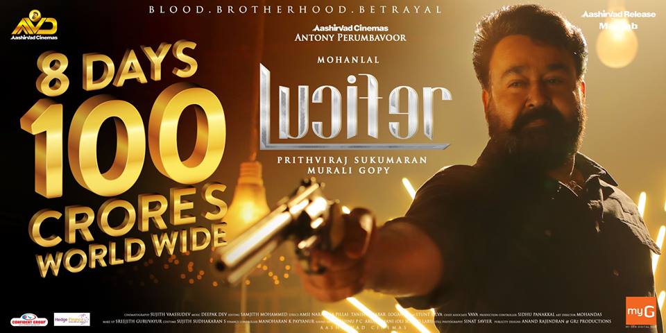 Directed by actor Prithviraj, Lucifer also becomes the fastest movie to enter 100 Crore club in Mollywood. Lucifer takes only 8 days to do so. Makers of Lucifer confirmed the news.